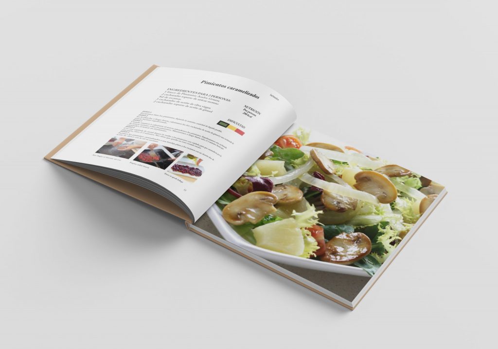 Portadas e interior de tres librillos de repostería, verduras y arroces. Realizado en Adobe Photoshop y Adobe Indesing.