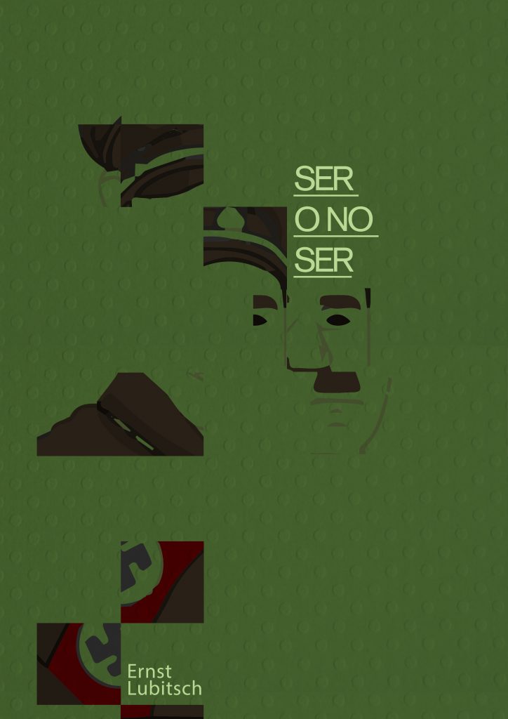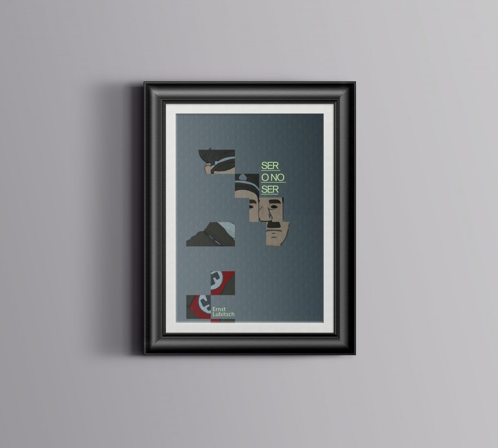 Poster de la obra maestra del director Estadodunidense Ernst Lubitsch nacido en Alemania «Ser o no ser». Película que narra la osadía de un matrimonio polaco que quiere salir de una lista negra de la Gestapo. Ambientada en la segunda guerra mundial. Diseño realizado en Adobe Photoshop basado en el cubismo.